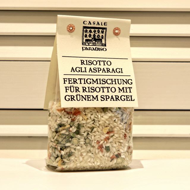 - Zutaten: Carnaroli Risottoreis 96%, Spargel 1%, Schnittlauch, Petersilie, Karotte, Zwiebeln, Knoblauch