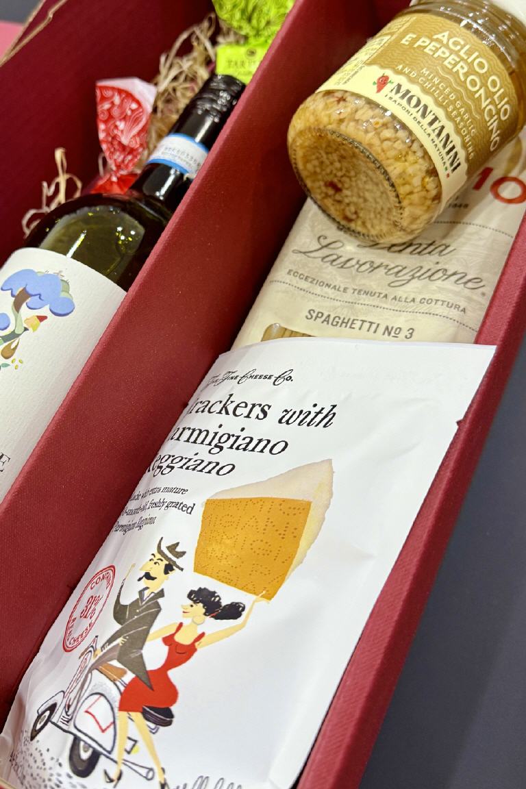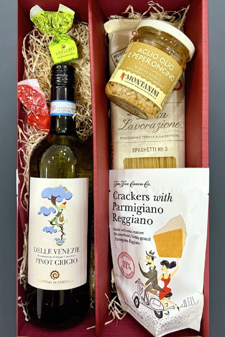 Typisch Italien - Spaghetti mit einer tollen Sauce, Parmesancracker und ein ausgesuchter Pinot Grigio delle Venezie.