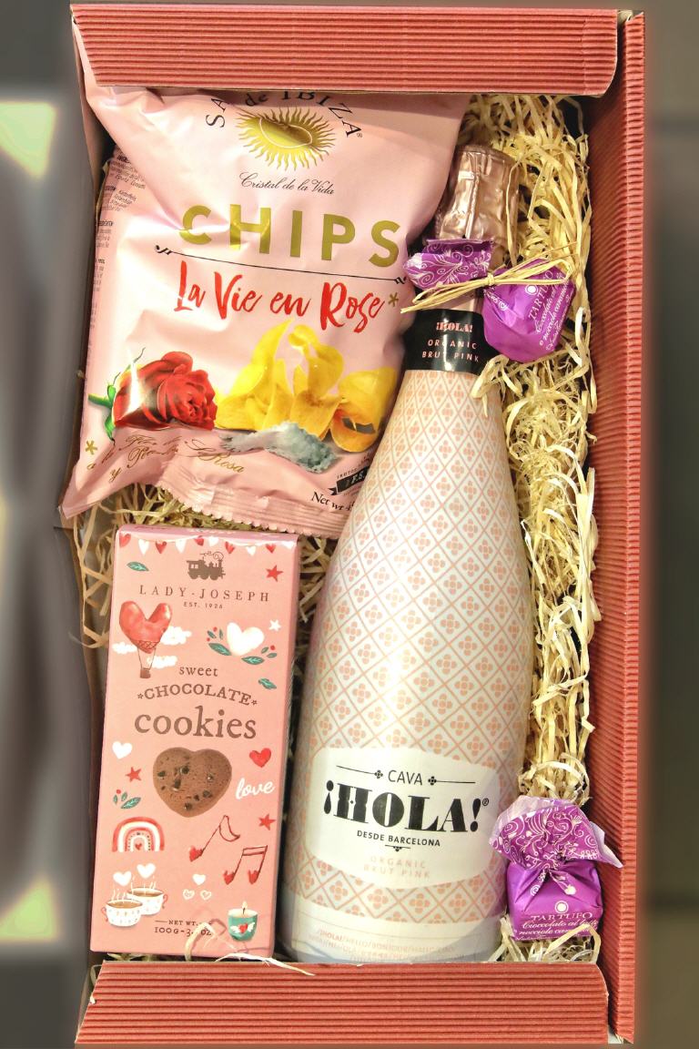 Mehr Herz und Rosa geht nicht. Schokoladenkekse in Herzform und Chips mit Rosensalz.
