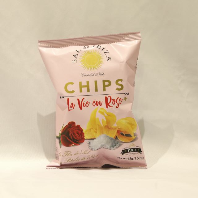 - Zutaten: Kartoffeln, Sonnenblumenöl, Rosenaroma, (Würzmischung, Maltodextrin, Rosenblätter Milchsäure), Meersalz aus Ibiza 1,8%