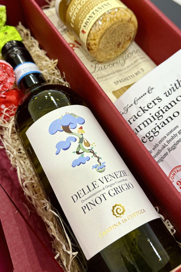 Typisch Italien - Spaghetti mit einer tollen Sauce, Parmesancracker und ein ausgesuchter Pinot Grigio delle Venezie.